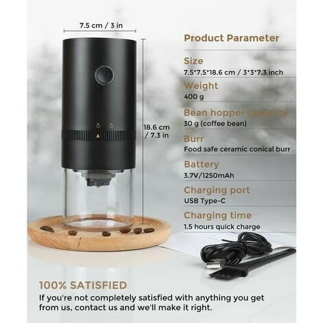 Design compatto ed elegante: misurato a 7,5*7,5*18 cm, questo macinacaffè elettrico è facile da riporre per infilarlo in borsa o in macchina. Sa forme à la mode et son boîtier noir givré pour un touche confortable.