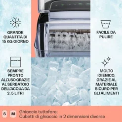 Klarstein Kristall Macchina Del Ghiaccio 2 Dimensioni Serbatoio Dell’acqua 2,5 L