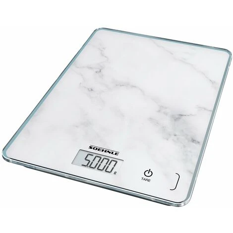 Portare e 5 kg. graduazione 1g. Aspetto marmo naturale. Schermo LCD da 12 mm. Sistema brevettato Sensor Touch. Funzione di spegnimento automatico. Funzione di tara. Piedini antiscivolo. Design extra piatto e compatto. Batterie incluse.